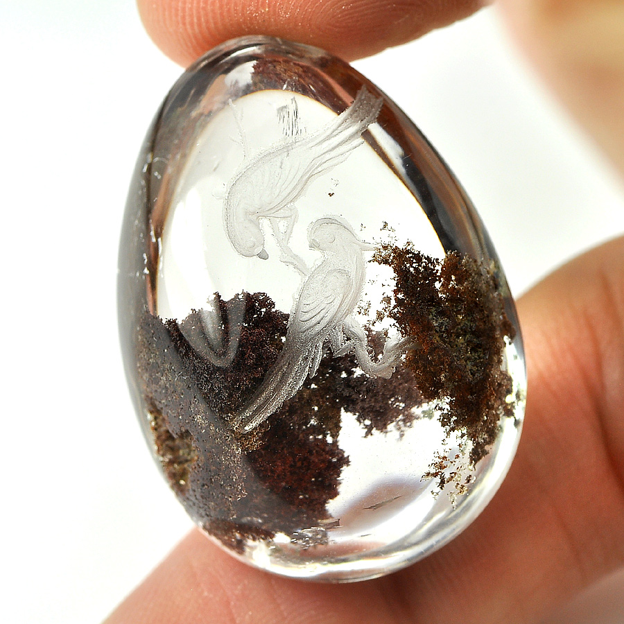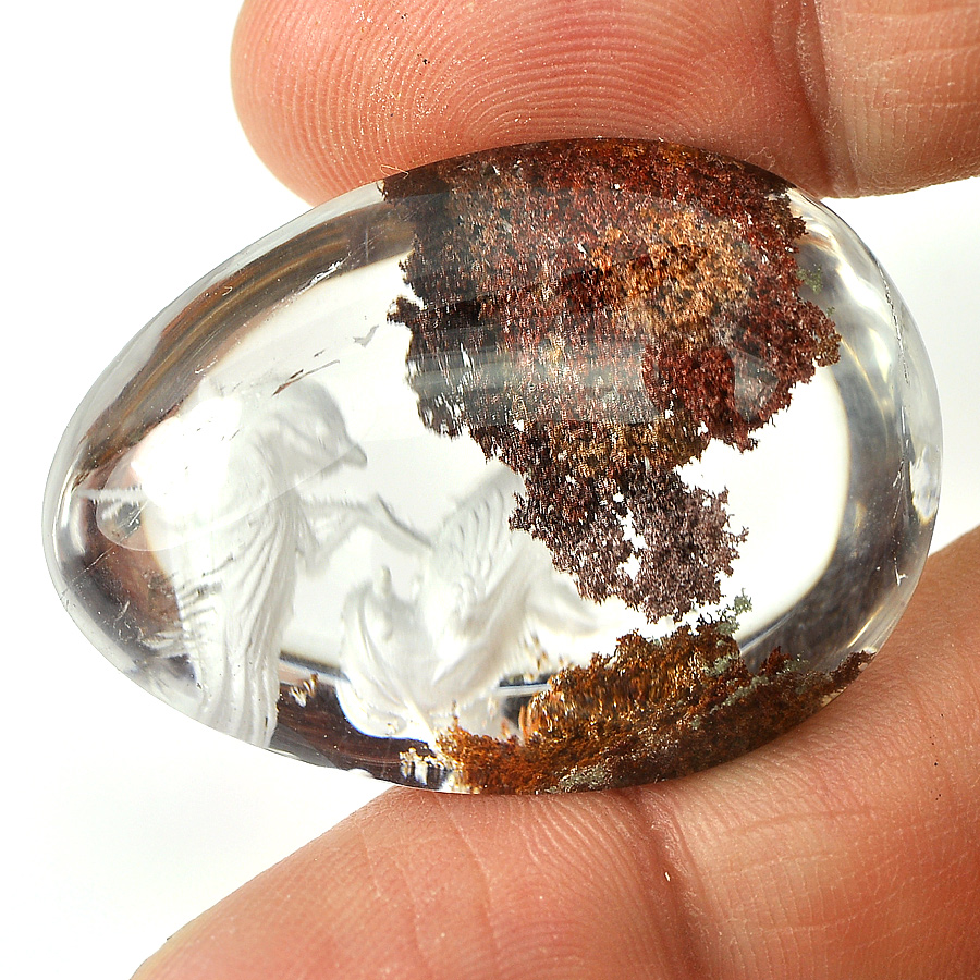 Inner Moss White Quartz 75.00 Ct. Pear Cabochon 34 x 24 Mm. Natural Gem Unheated