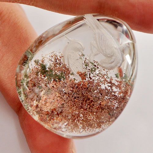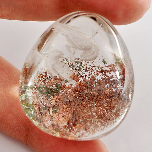 Quartz Multi Color Moss 150 Ct. Birds Carving 36 x 32 Mm. Natural Gem Unheated