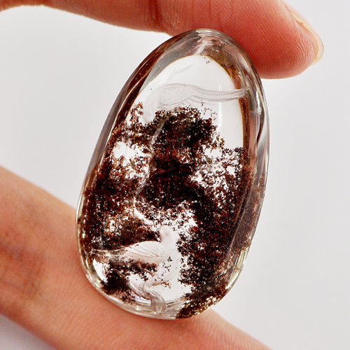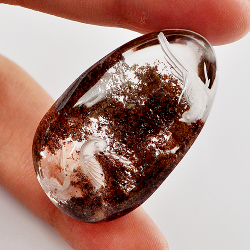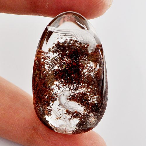 Moss Quartz 75 Ct. Birds Carving Inner Pear Cabochon 39 x 24 Mm. Natural Gem