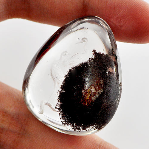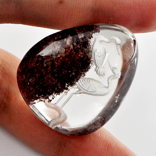 Moss Quartz Birds Carving Inner 100.00 Ct. Pear Cabochon 34 x 28 Mm. Natural Gem