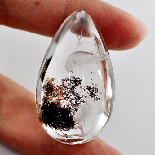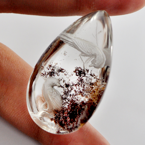 Moss Quartz Birds Carving 75.00 Ct. Natural Gemstone Pear Cabochon 39 x 23 Mm.