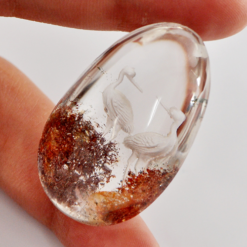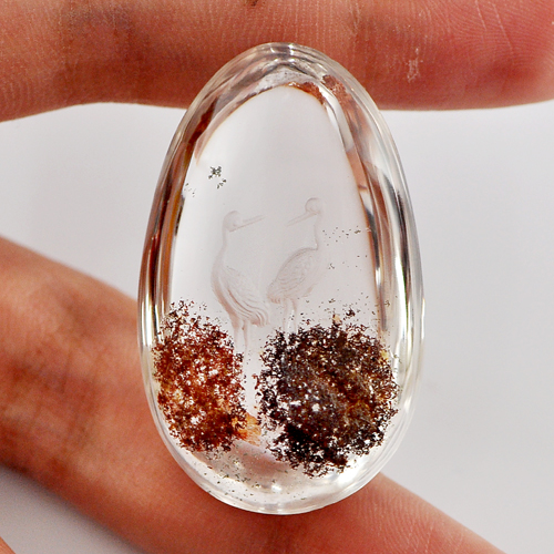 Moss Quartz Birds Carving Inner Pear Cabochon Shape 75.00 Ct. Natural Gemstone