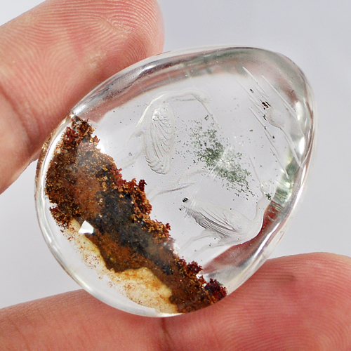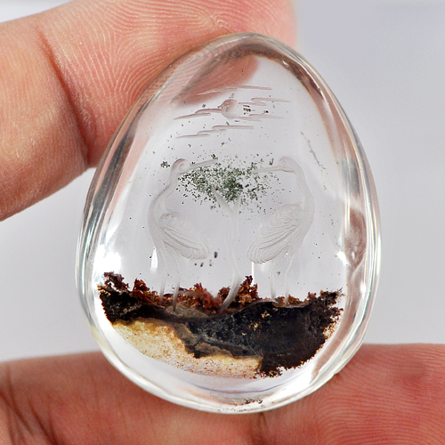 Moss Quartz Birds Carving Inner 100 Ct. Natural Gem Pear Cabochon 36 x 28 Mm.