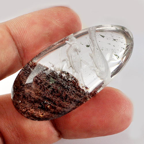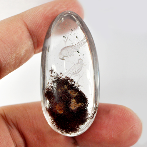 100.00 Ct. Natural Inner Moss Brown White Quartz Carving Birds Pear Cabochon