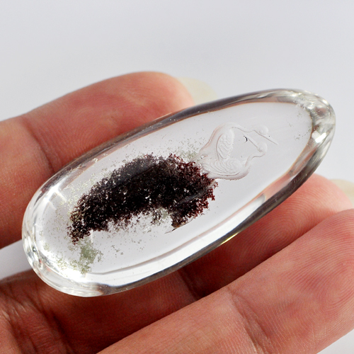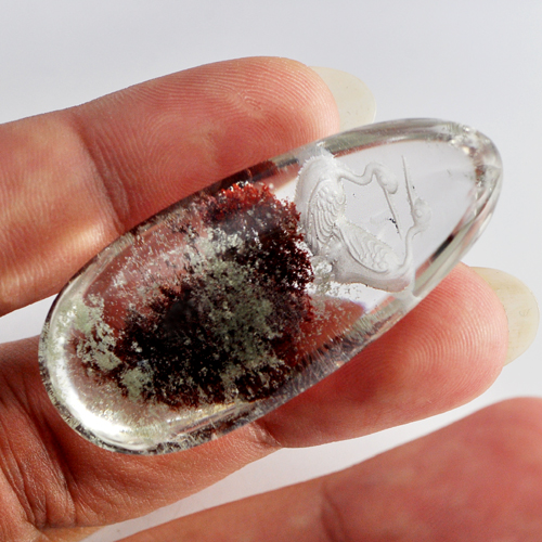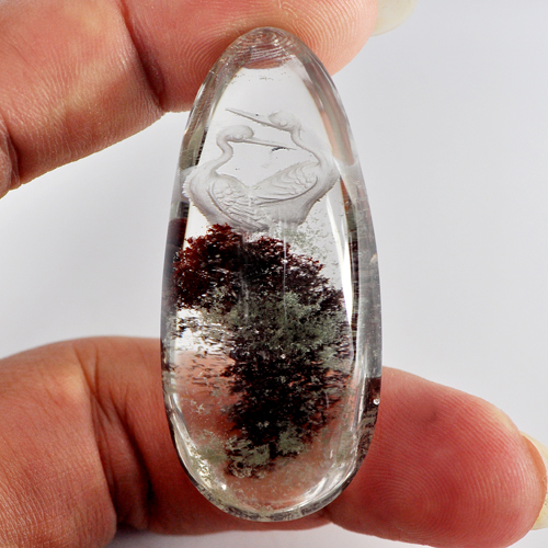 Moss Quartz Carving Birds Inner 125 Ct. Pear Cabochon 50 x 22 Mm. Natural Gem
