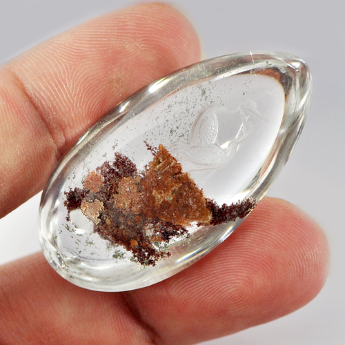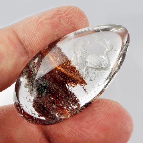 Moss Quartz Birds Carving Inner 75.00 Ct. Pear Cabochon 42 x 22 Mm. Natural Gem