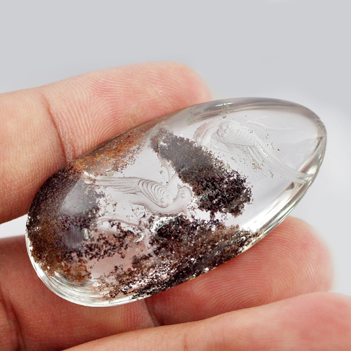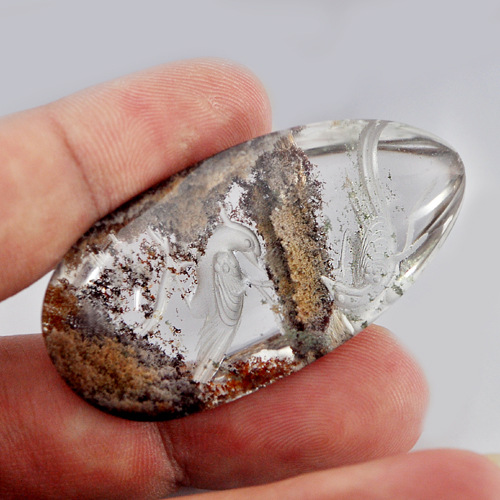 Moss Quartz Birds Carving Inner 100.00 Ct. Pear Cabochon Shape Natural Gemstone