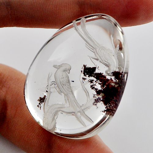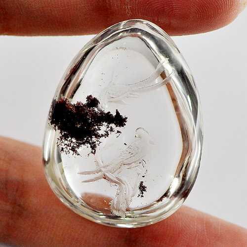Moss Quartz Birds Carving Inner 100.00 Ct. Pear Cabochon 31 x 26 Mm. Natural Gem