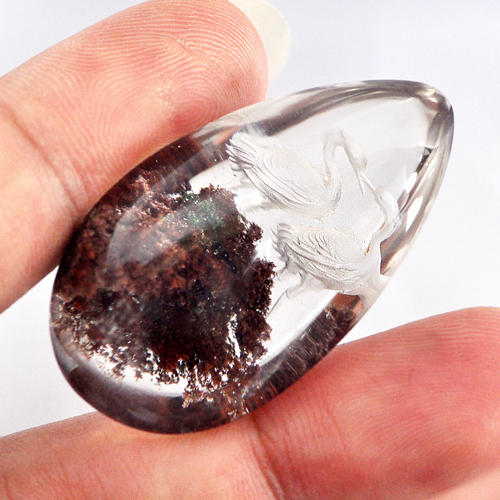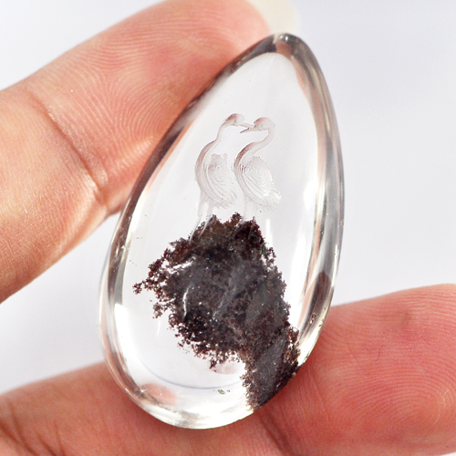 Moss Quartz Carving Birds Inner 75 Ct. Pear Cabochon Natural Gemstone Unheated
