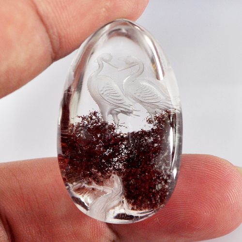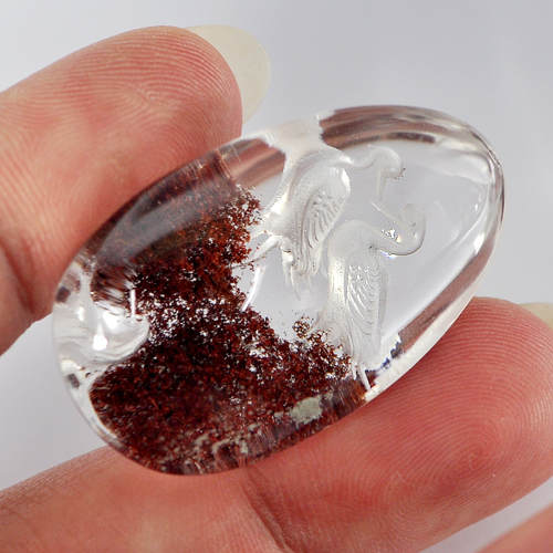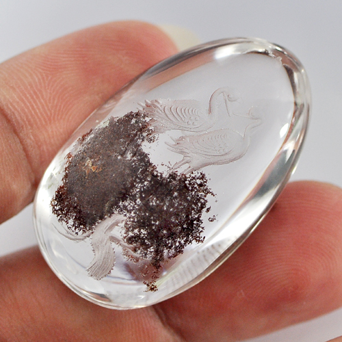Moss Quartz Carving Birds Inner 75.00 Ct. Pear Cabochon Shape Natural Gemstone
