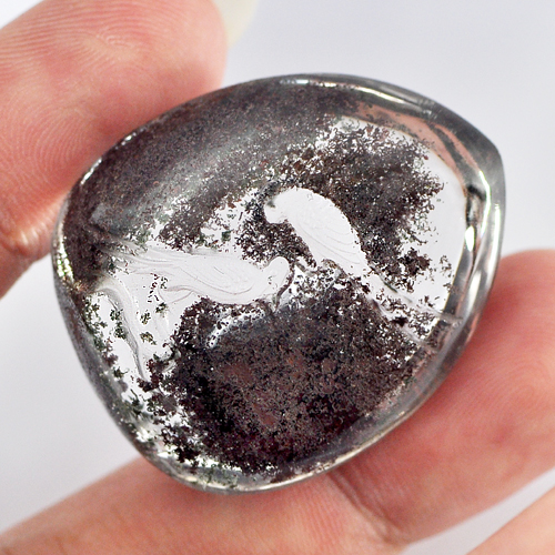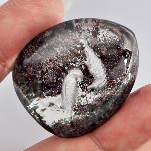 Inner Moss Brown White Quartz 125.00 Ct. Carving Birds Pear Cabochon Natural Gem