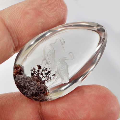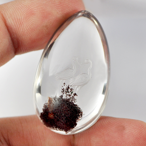 Moss Quartz Carving Birds Inner 75 Ct. Pear Cabochon 36 x 22 Mm. Natural Gem