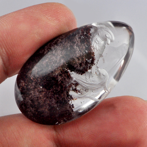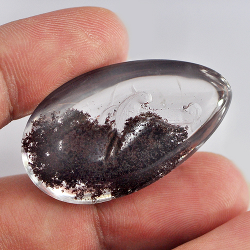 Moss Quartz Carving Birds Inner 75.00 Ct. Pear Cabochon 37 x 23 Mm. Natural Gem