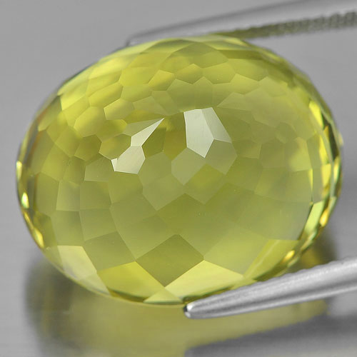 Quartz Yellow Lemon 21.86 Ct. Clean Oval 18.2 x 15.3 Mm. Natural Gem Unheated