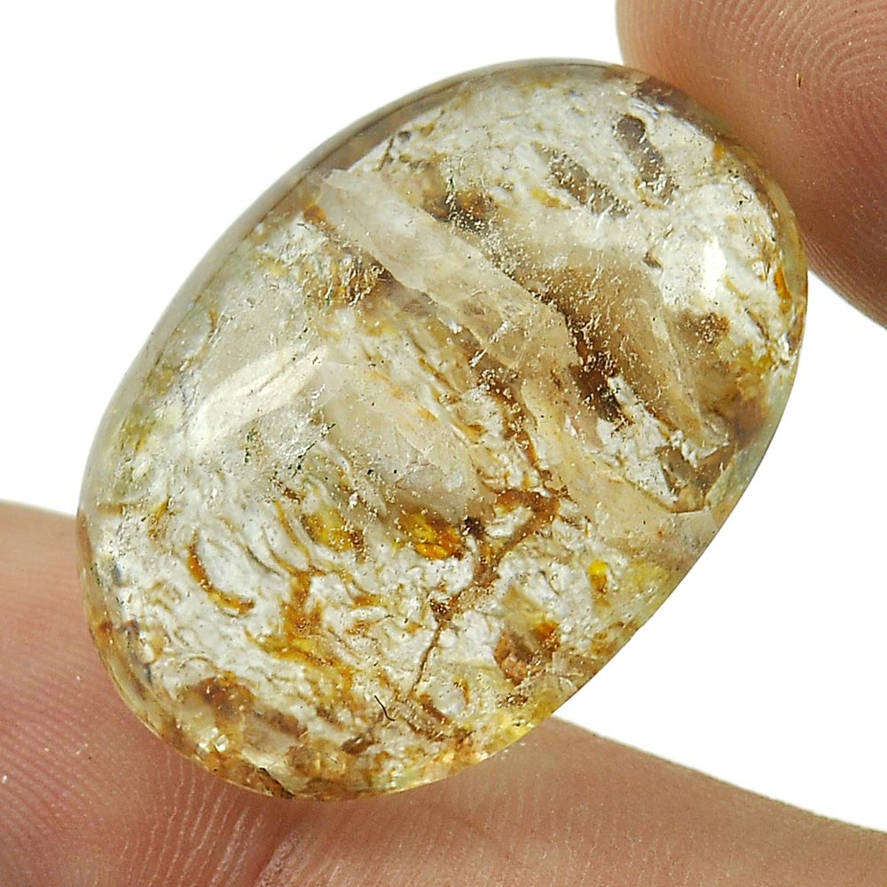 Brown White Quartz 51.00 Ct. Oval Cabochon 29 x 20 Mm. Natural Gemstone Unheated