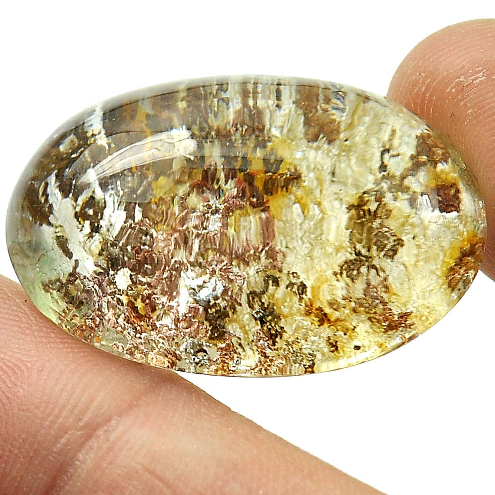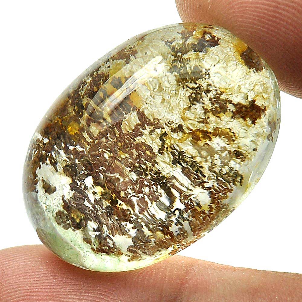 Brown White Moss Quartz 55.75 Ct. Oval Cabochon Natural Gemstone Unheated