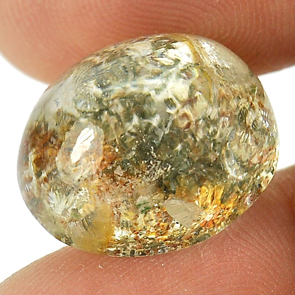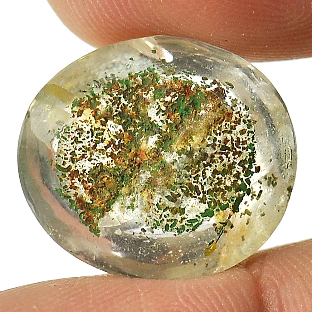 Moss Brown White Quartz 15.51 Ct. Oval Cabochon 16.5 x 14.5 Mm. Natural Gemstone