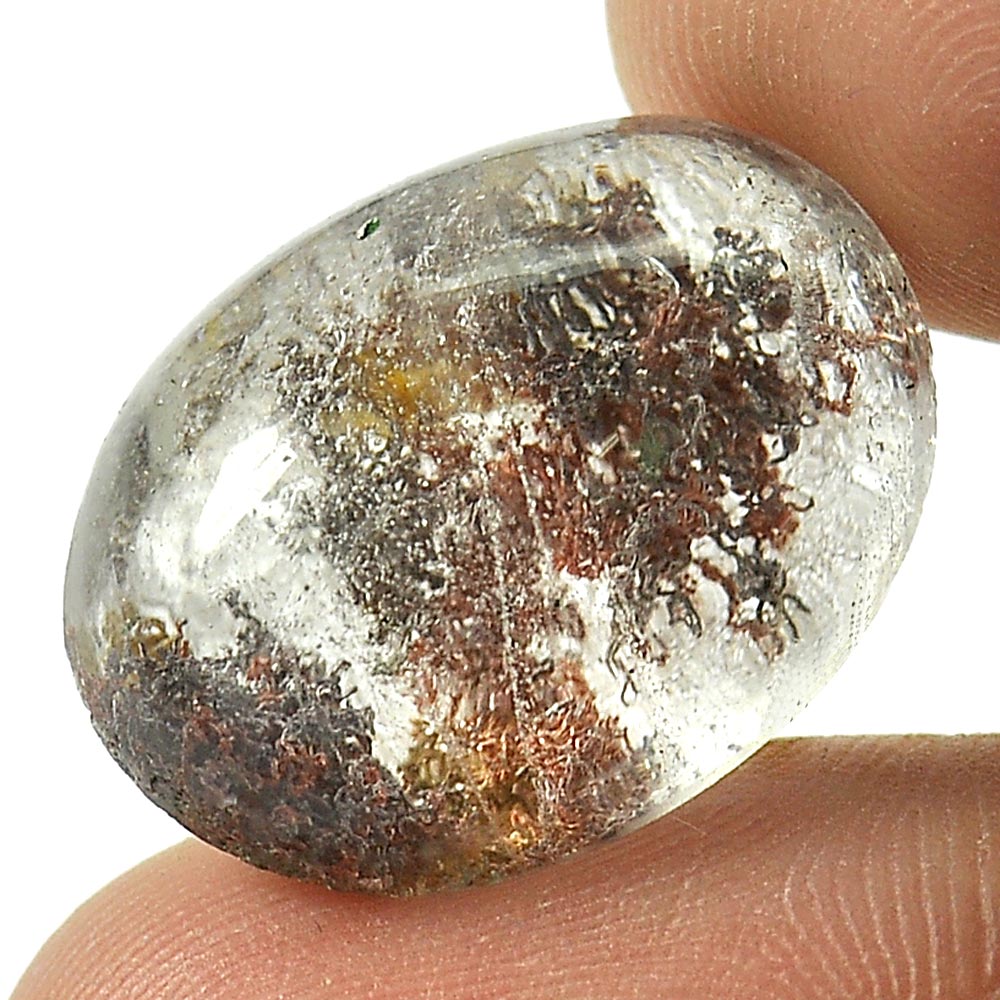 Oval Cabochon 20 x 15 Mm. Natural Gemstone Moss Brown White Quartz 17.83 Ct.