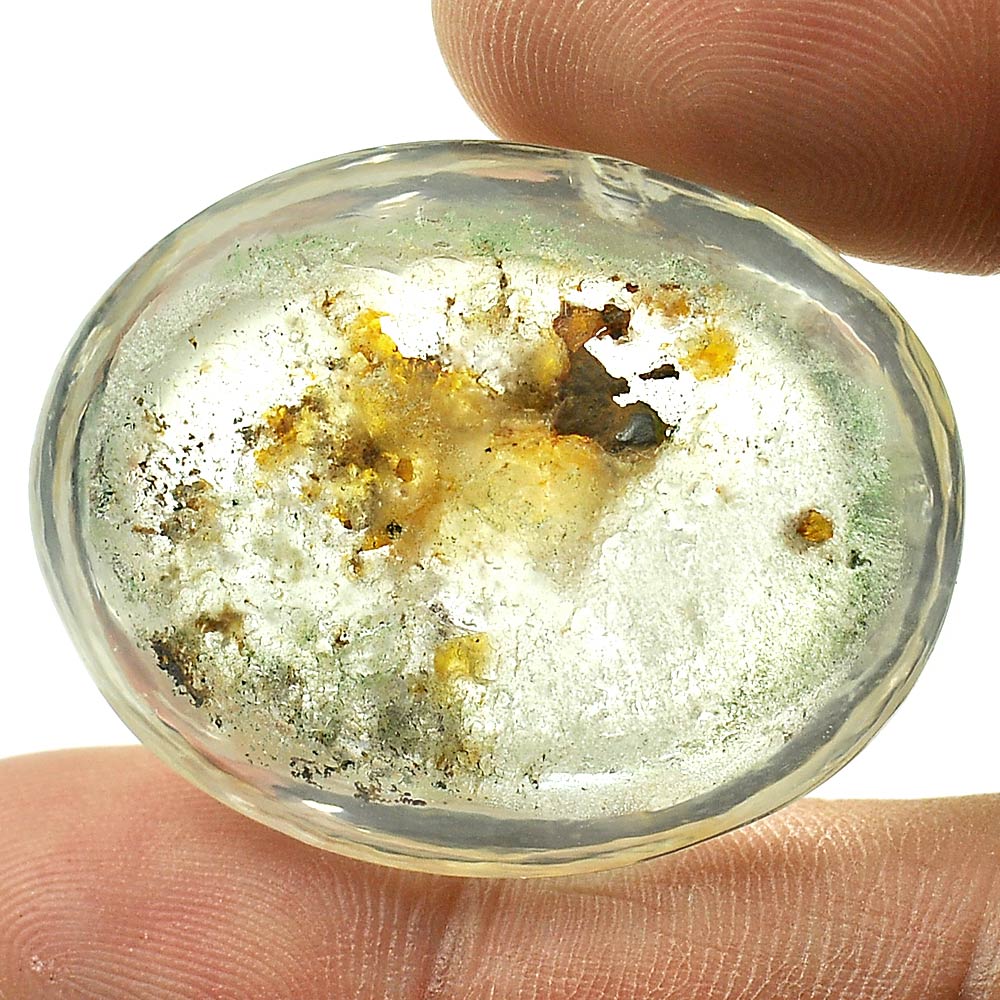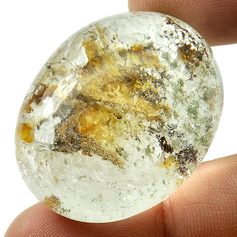 Moss Brown White Quartz 98.79 Ct. Oval Cabochon 34 x 26 Mm. Natural Gemstone