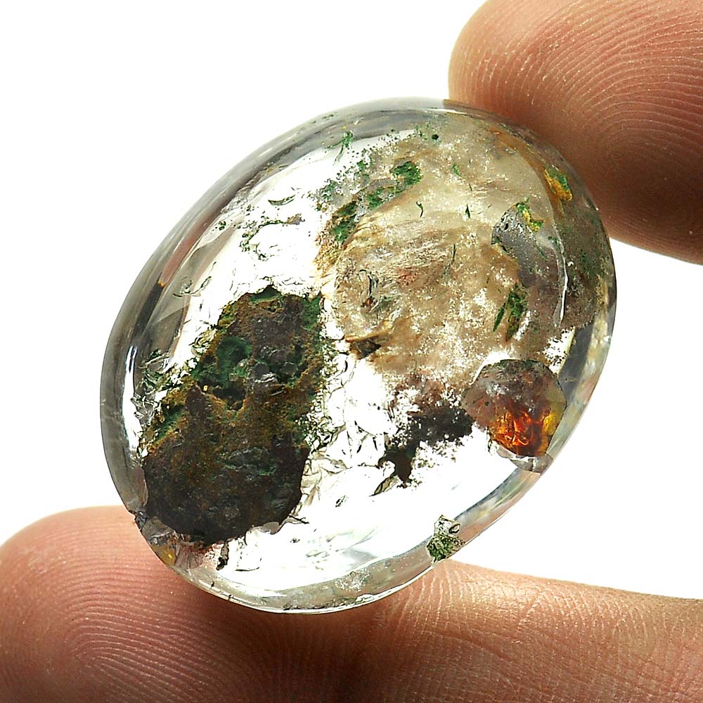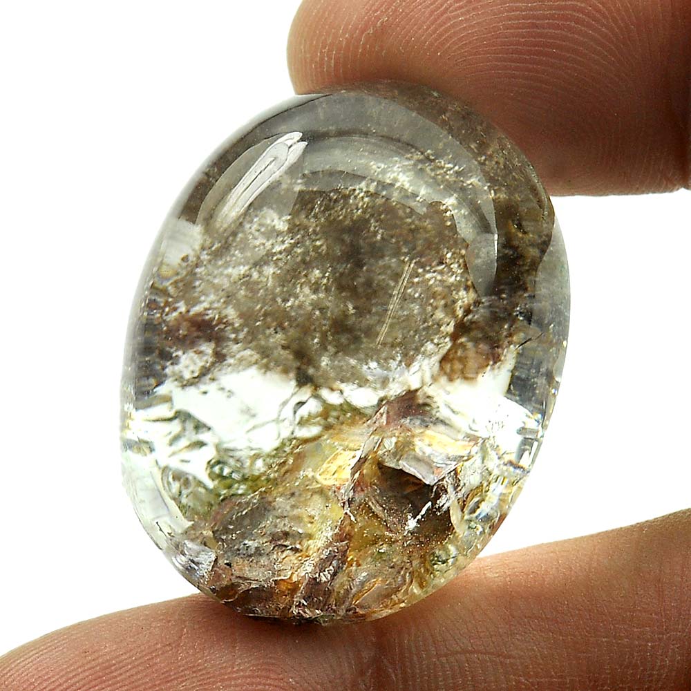 Brown White Moss Quartz 80.99 Ct. Oval Cabochon 30 x 23 Mm. Natural Gemstone