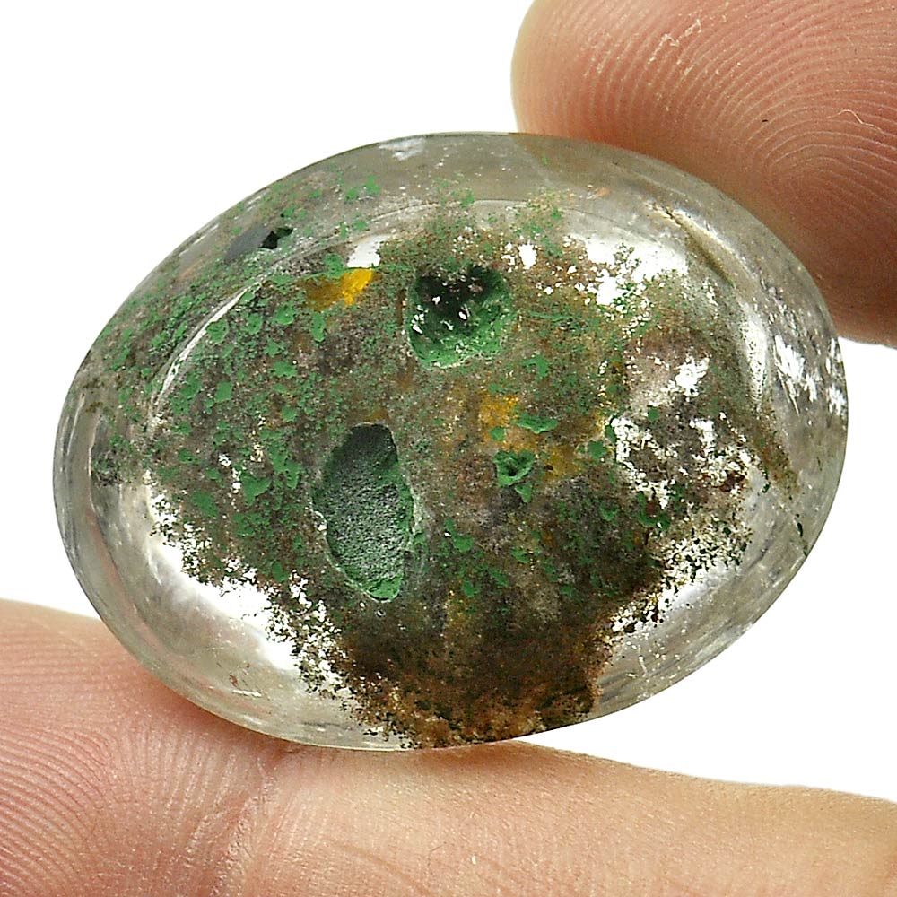 Natural Moss Quartz 60.89 Ct. Oval Cabochon 29 x 22 Mm. Unheated Gemstone
