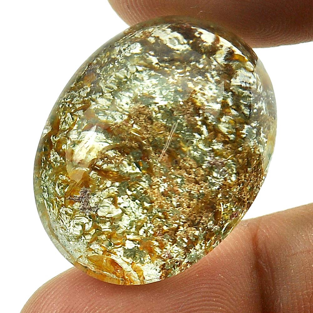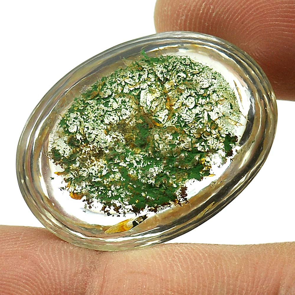 Multi-Color White Moss Quartz 43.00 Ct. Oval Cabochon 27 x 20 Mm. Natural Gem