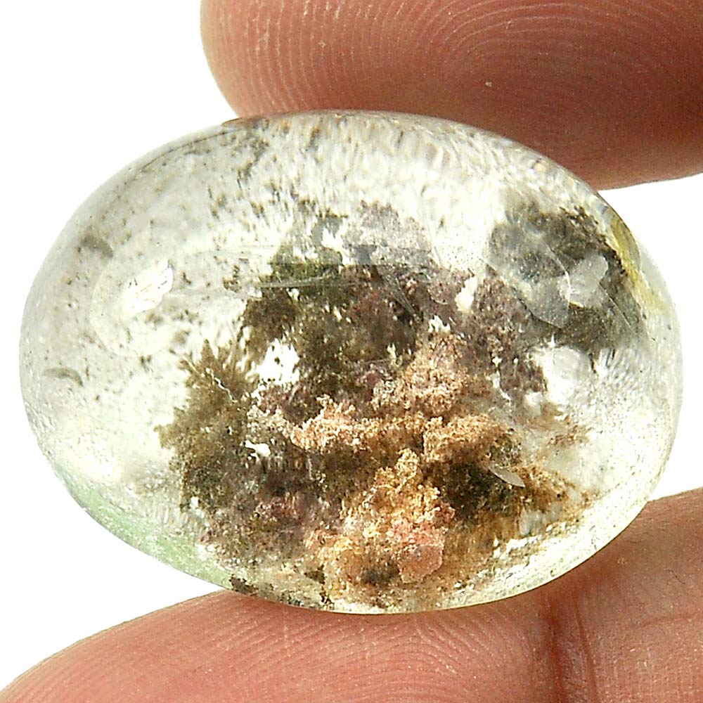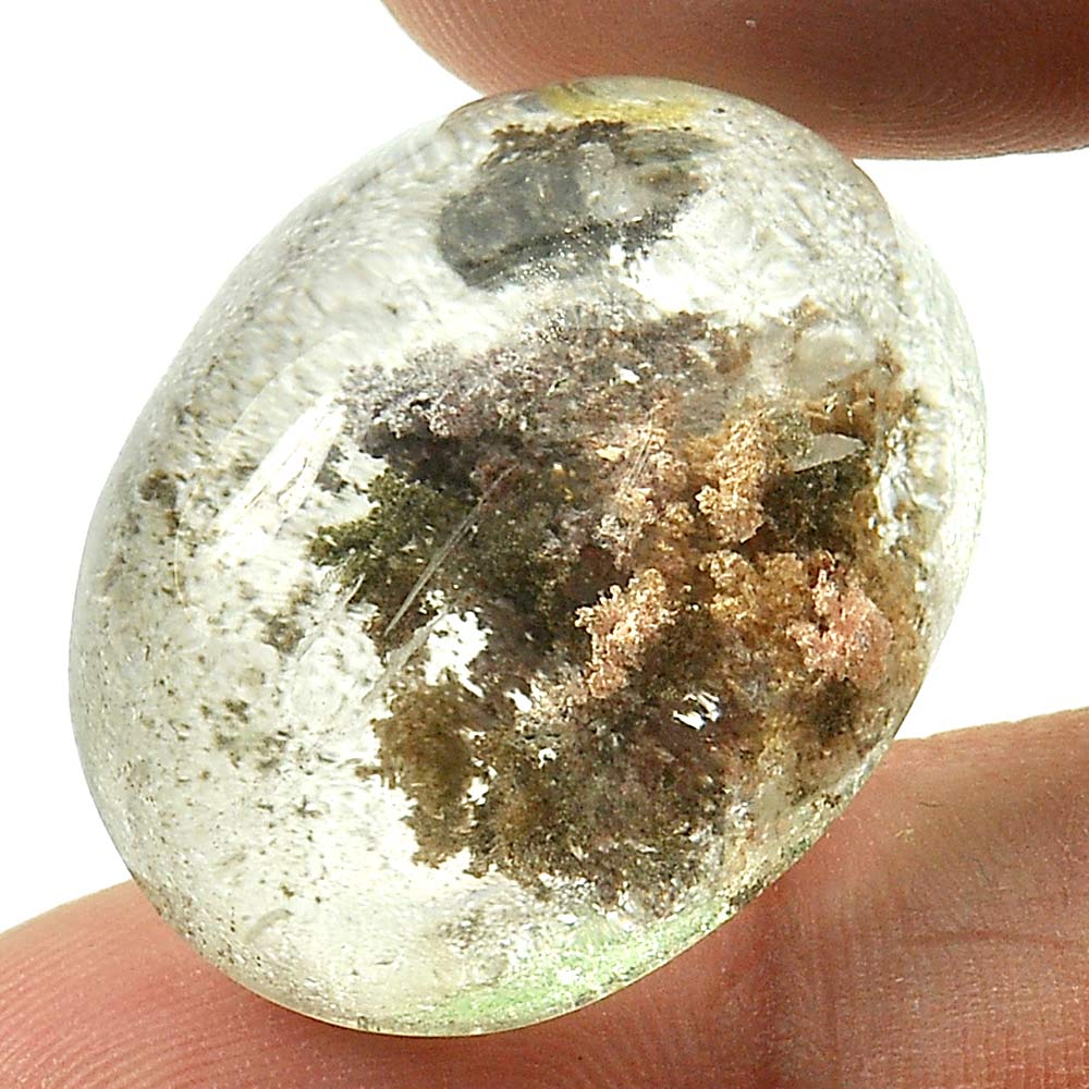 Brown White Moss Quartz 40.10 Ct. Oval Cabochon 24 x 19.5 Mm. Natural Gemstone