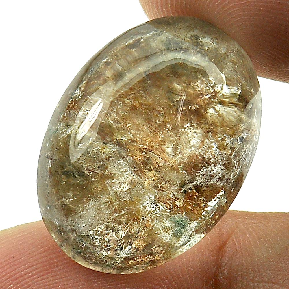Brown White Moss Quartz 26.80 Ct. Oval Cabochon 24 x 17.4 Mm. Natural Gemstone