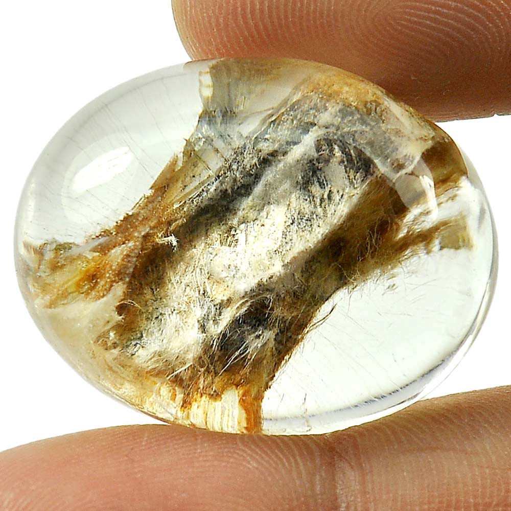 Brown White Quartz 59.21 Ct. Oval Cabochon 27 x 21 Mm. Natural Gemstone Unheated
