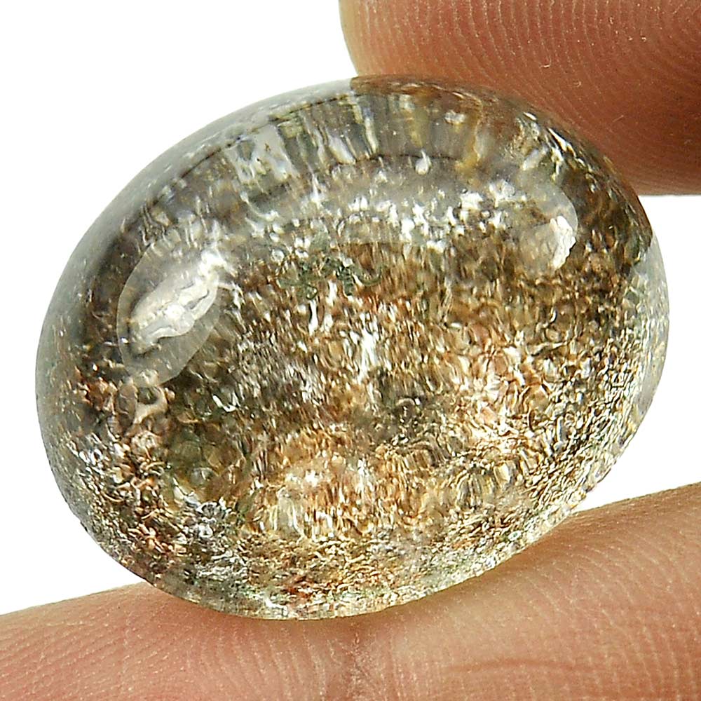 Brown White Moss Quartz 29.38 Ct. Oval Cabochon 22 x 18.2 Mm. Natural Gemstone