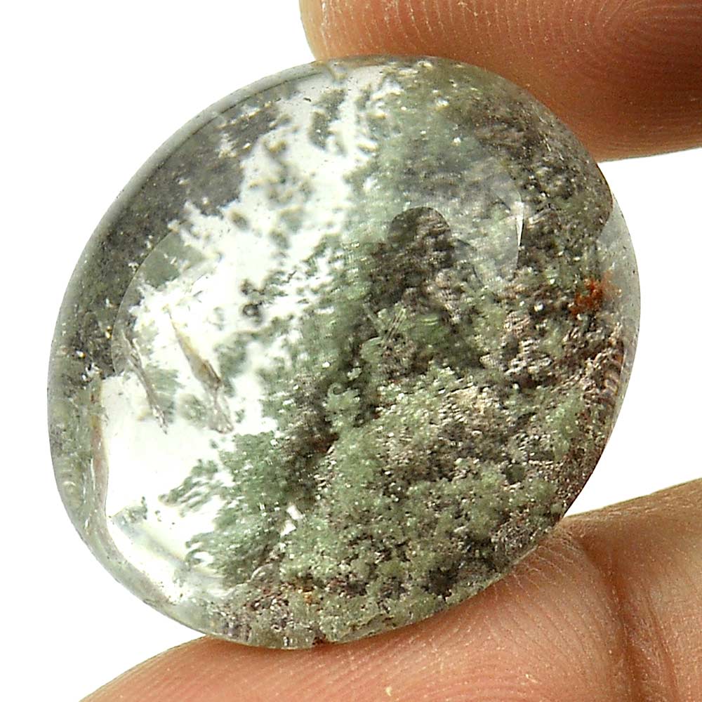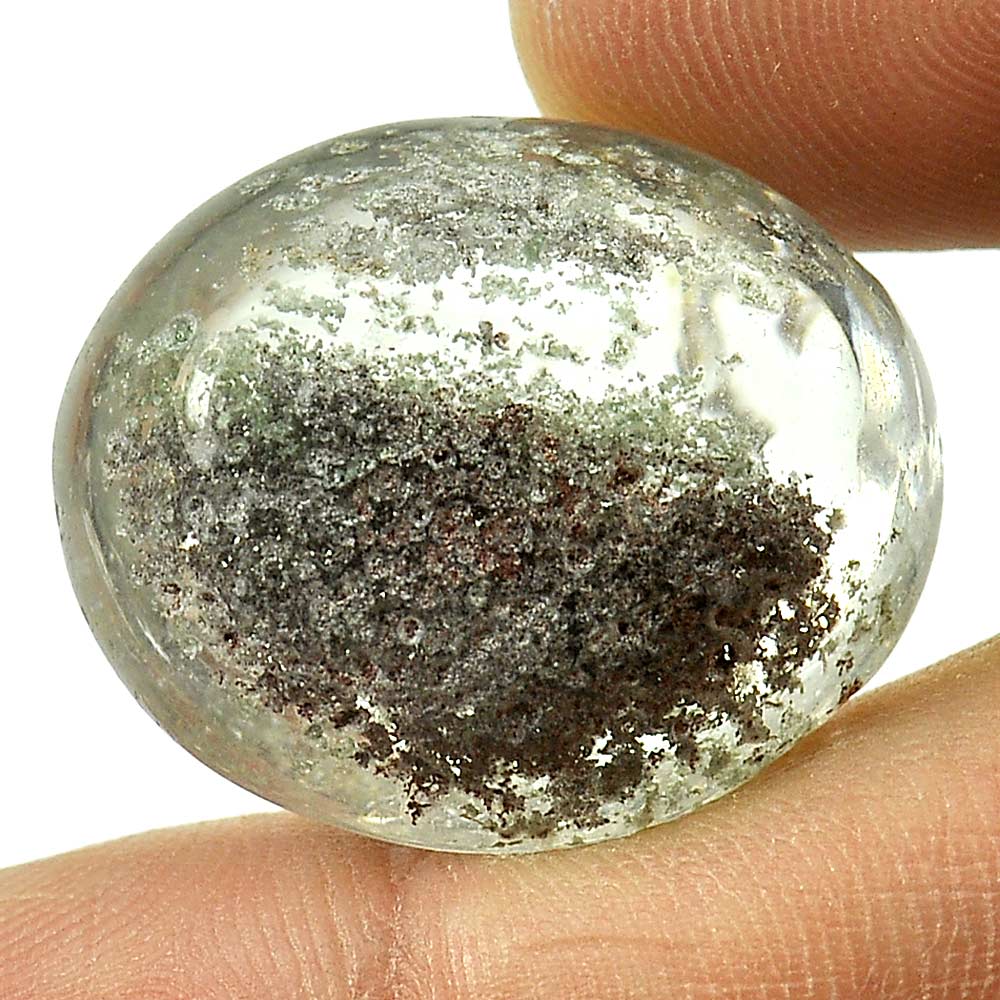 Brown White Moss Quartz 38.51 Ct. Oval Cabochon 22 x 19.3 Mm. Natural Gemstone