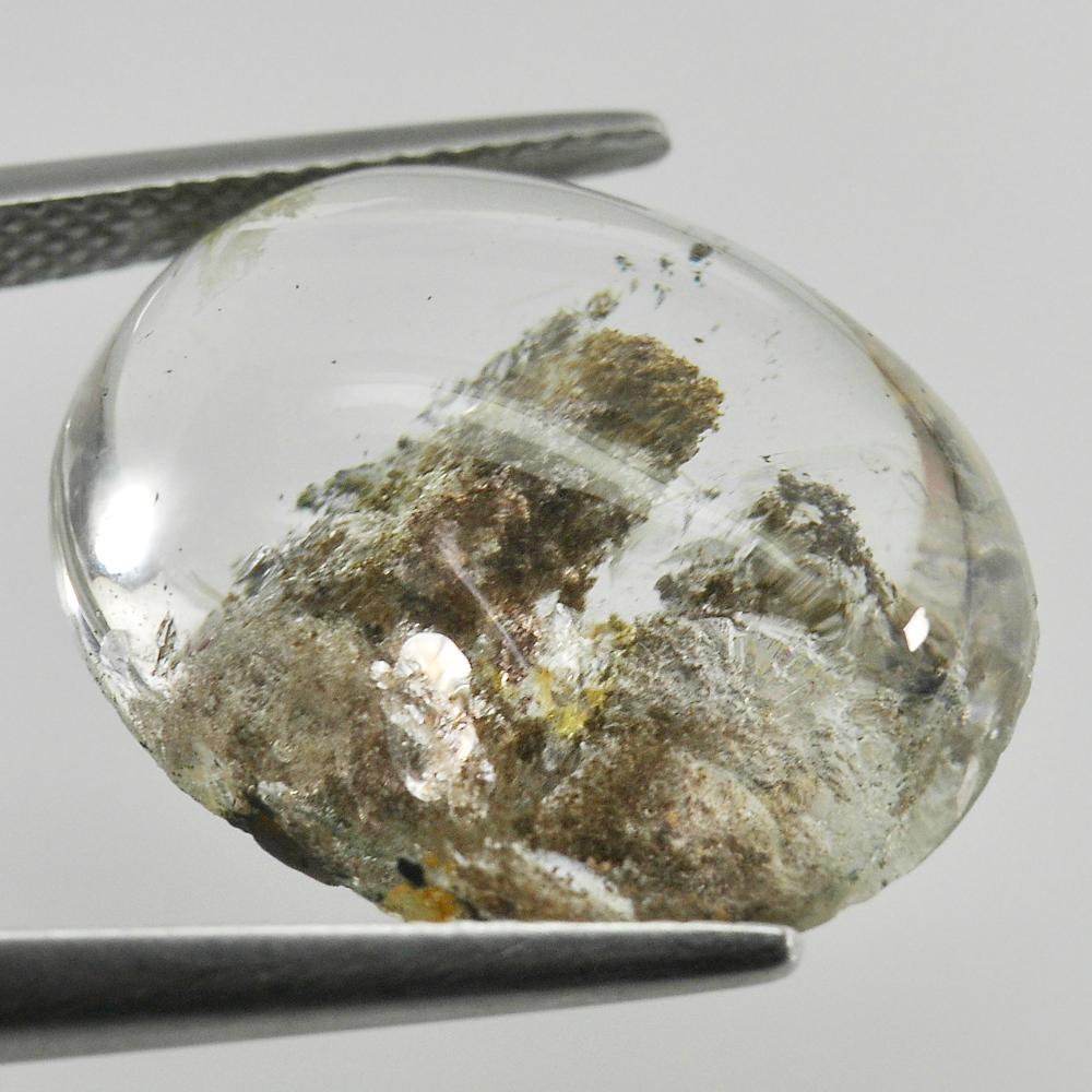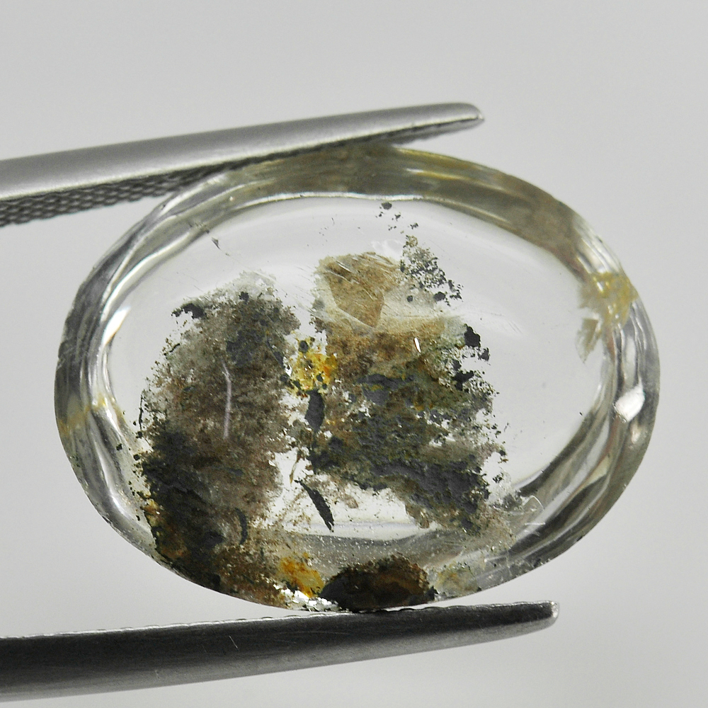White Brown Moss Quartz 18.73 Ct. Oval Cabochon Natural Gemstone Unheated
