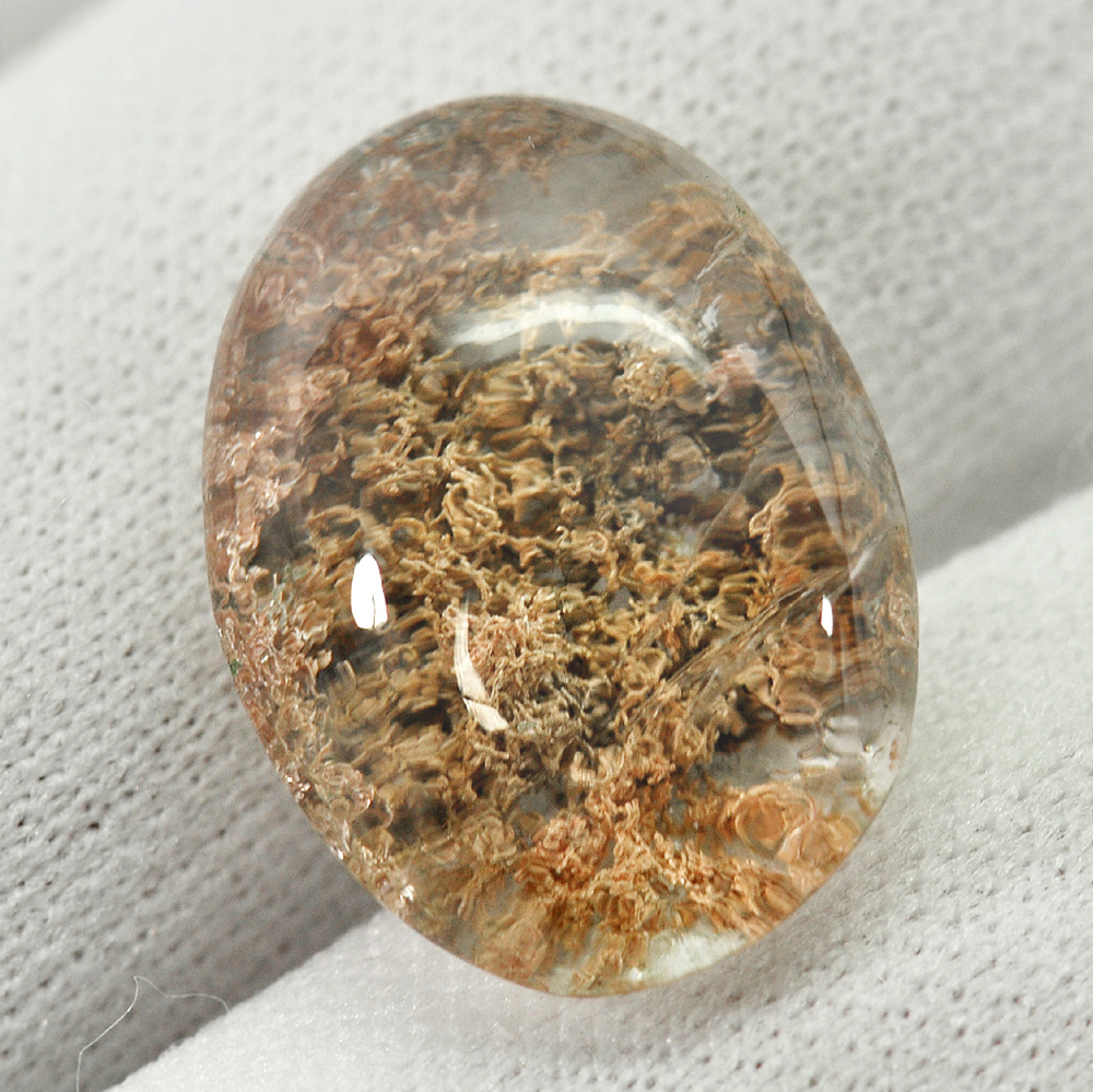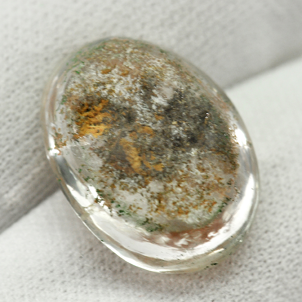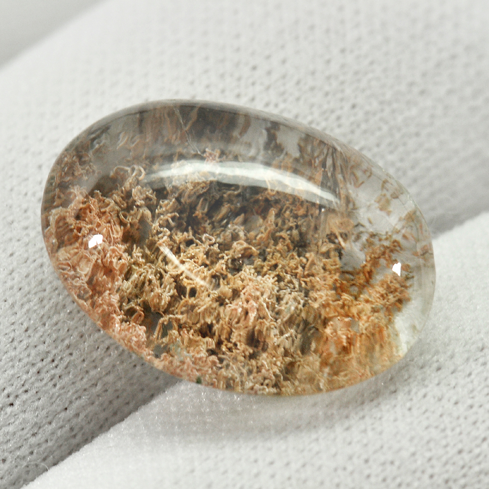 White Brown Moss Quartz 17.44 Ct. Oval Cabochon 19.6 x 14.3 Mm. Natural Gemstone