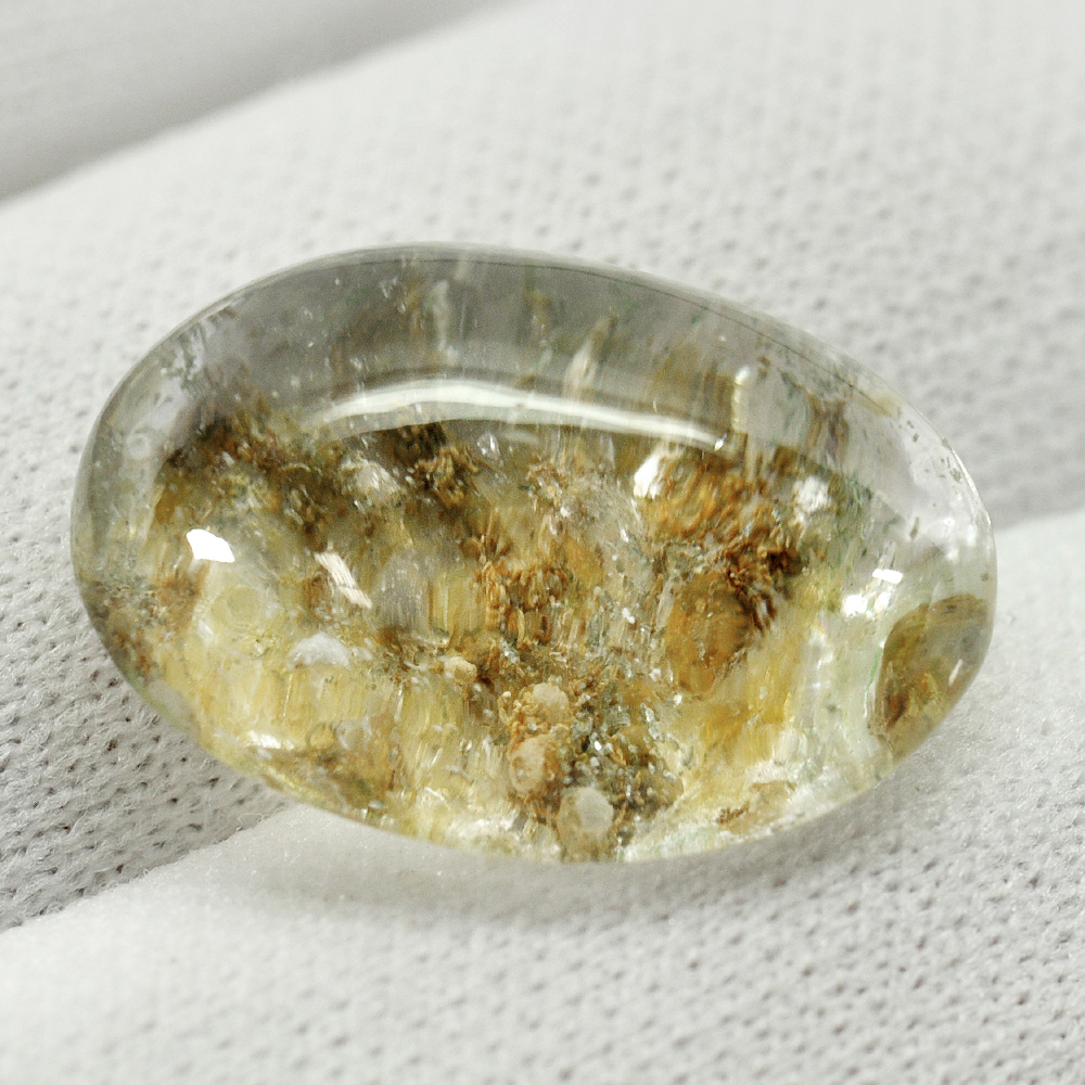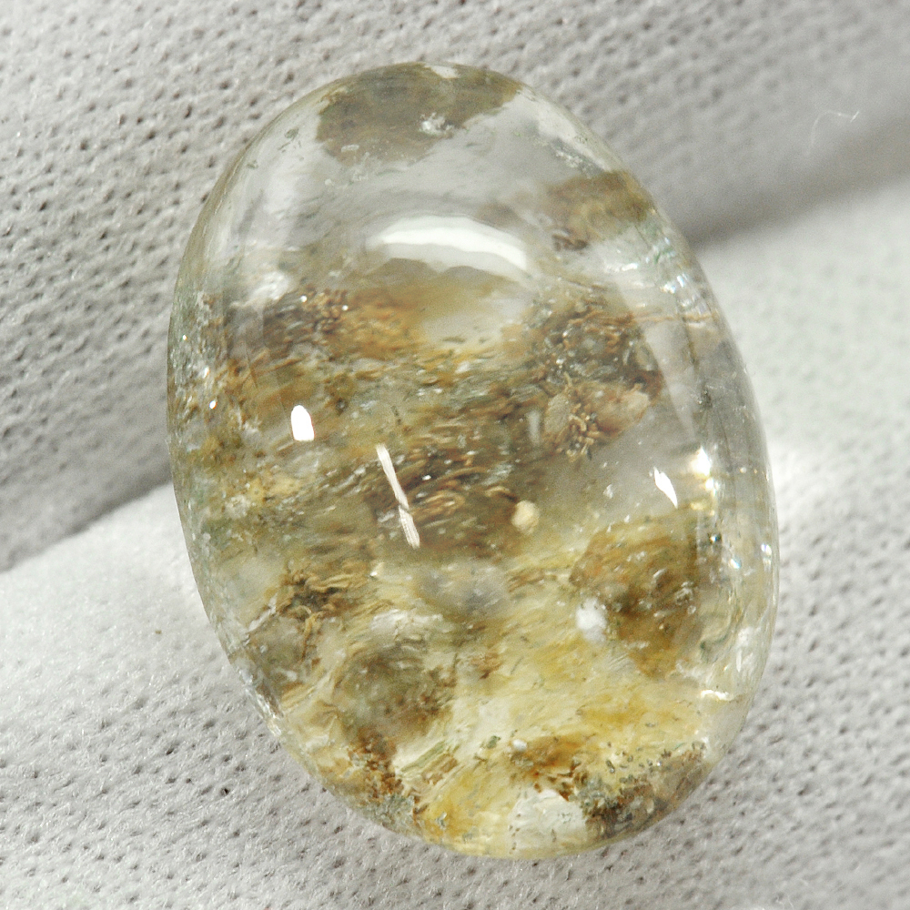 White Brown Moss Quartz 14.32 Ct. Oval Cabochon 18.7 x 13.7 Mm. Natural Gemstone