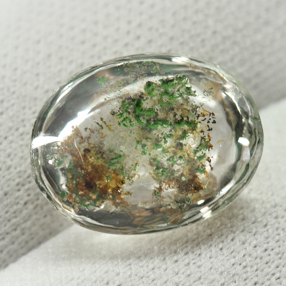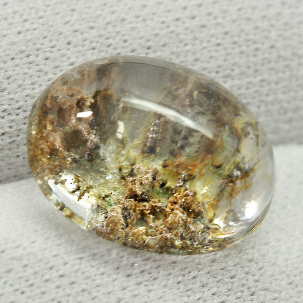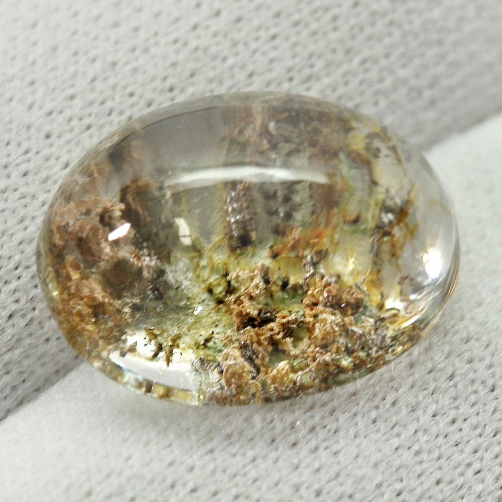 White Brown Moss Quartz 10.16 Ct. Oval Cabochon 15.5 x 11.9 Mm. Natural Gemstone
