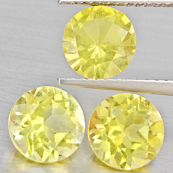 Natural Yellow Lemon Quartz 3.37 Ct. 3 Pcs Round Shape 7.2 Mm Gemstone From Brazil
