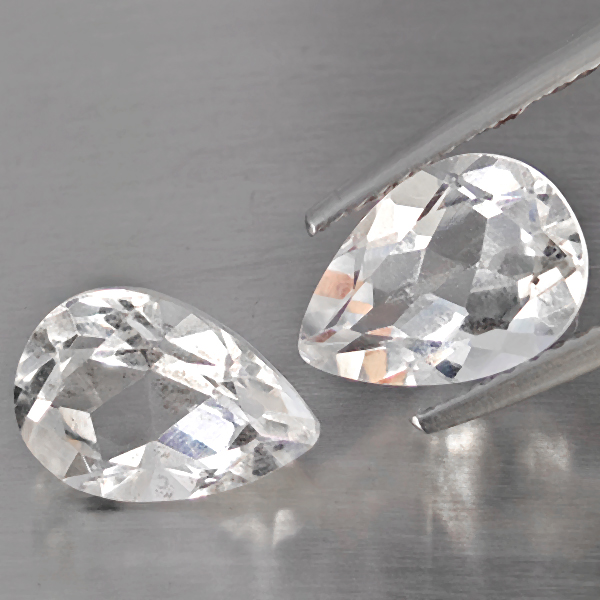 Natural White Quartz 3.98 Ct. 2 Pcs Pear Shape 10.2 x 7.2 Mm Gemstone from Brazil