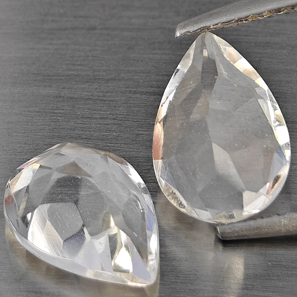 Natural White Quartz 2.85 Ct. 2 Pcs Pear Shape 9.1 x 6.1 Mm Gemstone from Brazil
