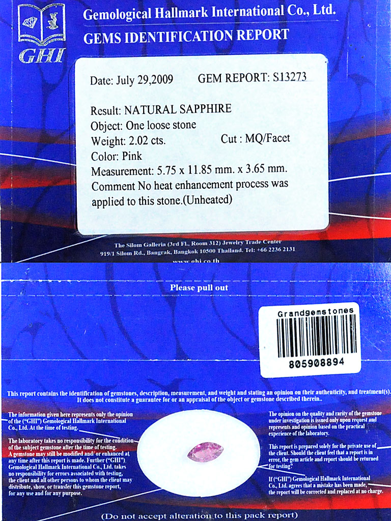 2.02 Ct. Certified Unheated Hot Red Pink Winza Ruby Gem