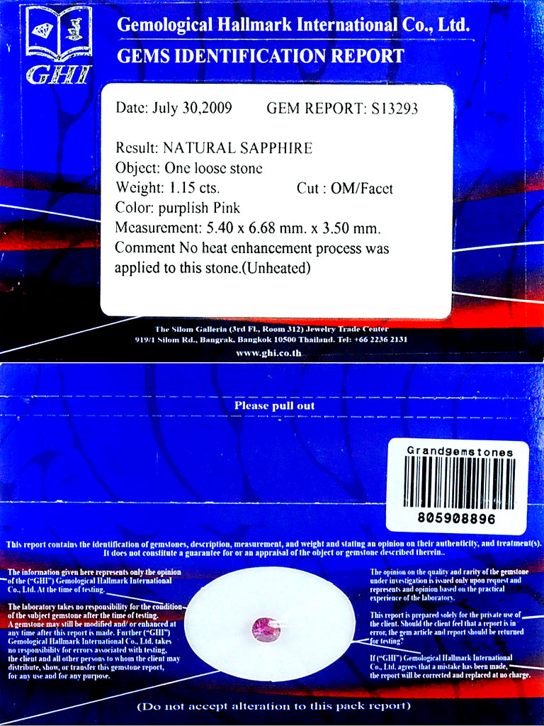 1.15 Ct. Certified Unheated Hot Red Pink Winza Ruby Gem