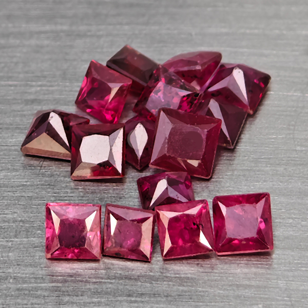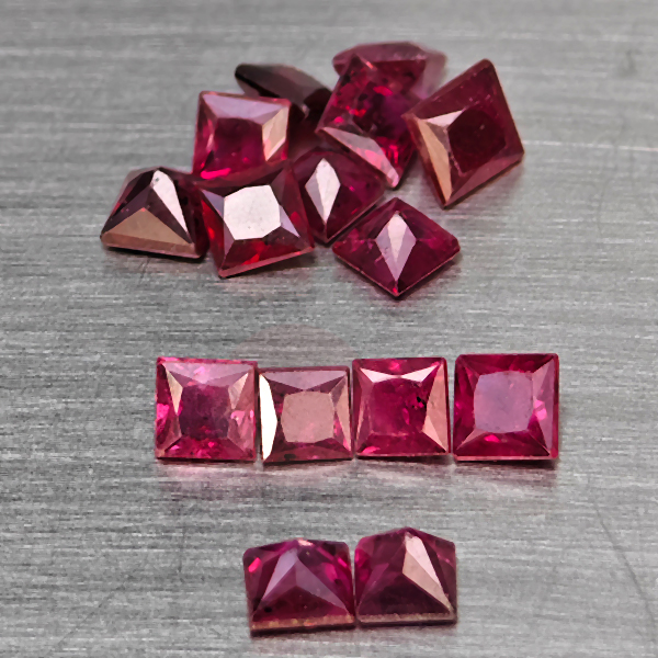 Natural Purplish red Ruby 2.08 Ct. 15 Pcs Square Shape 2.5 Mm Gemstones From Mozambique