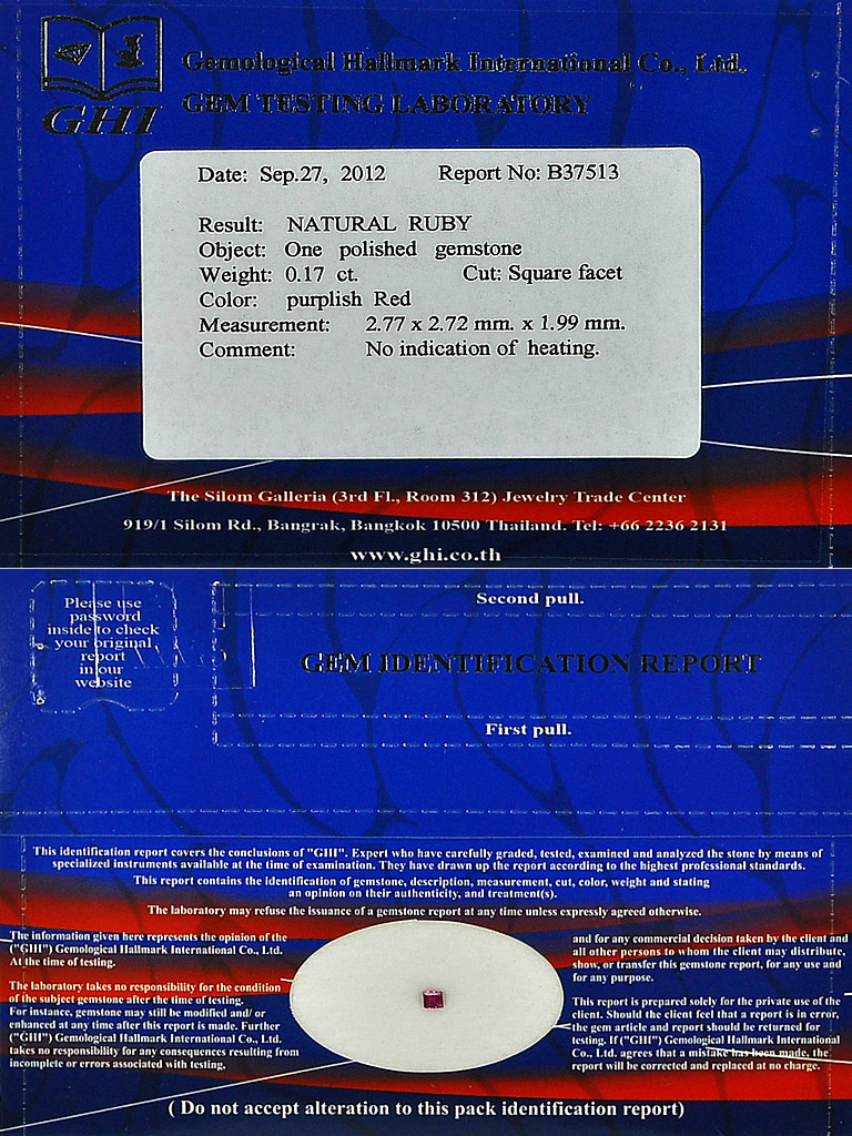 Certified Unheated 0.17 Ct. Alluring Square Natural Purplish Red Ruby Mozambique