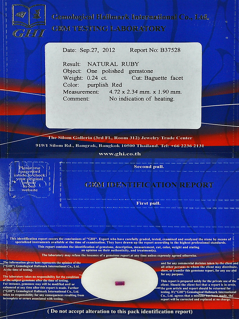 Certified 0.24 Ct. Natural Purplish Red Ruby Baguette Shape Mozambique Unheated