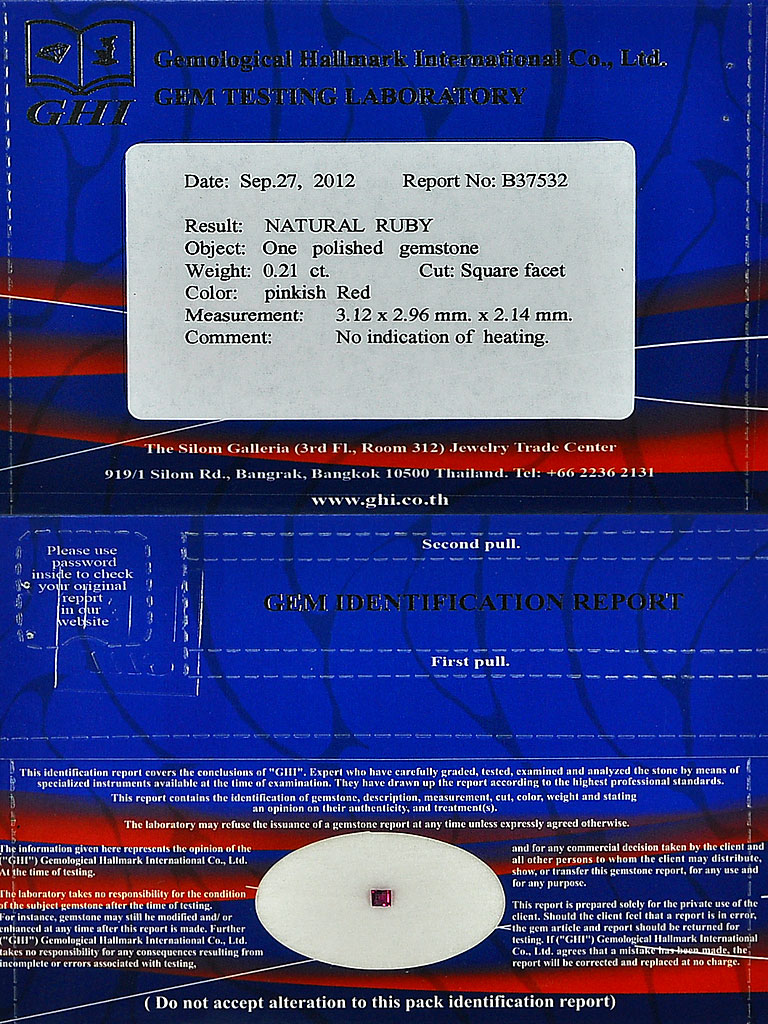 Certified Unheated 0.21 Ct. Square Shape Natural Pinkish Red Ruby Mozambique
