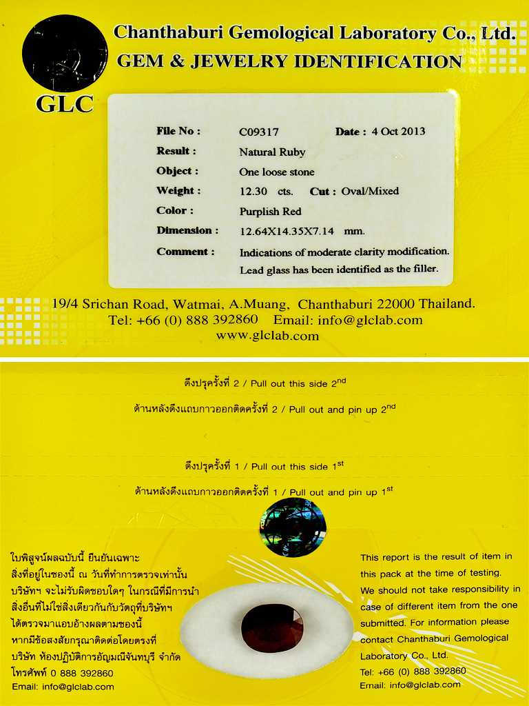 Purplish Red Ruby Certified 12.30 Ct. Oval 12.64 x 14.35 Mm. Natural Gemstone