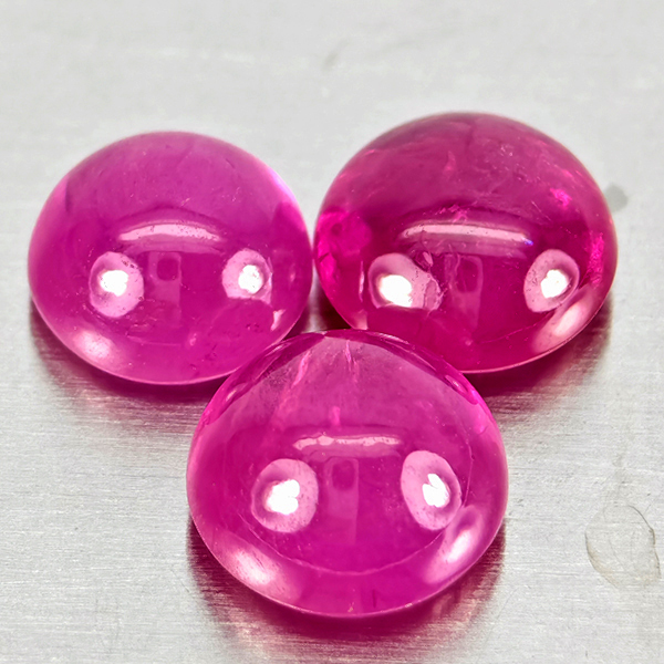Natural Pink Red Jonson Ruby 2.45 Ct. 3 Pcs Round Cabochon Shape Gemstones