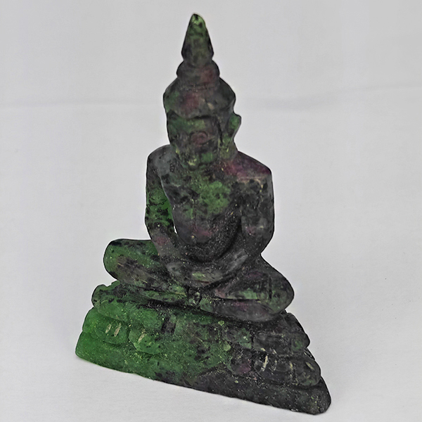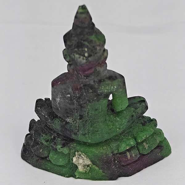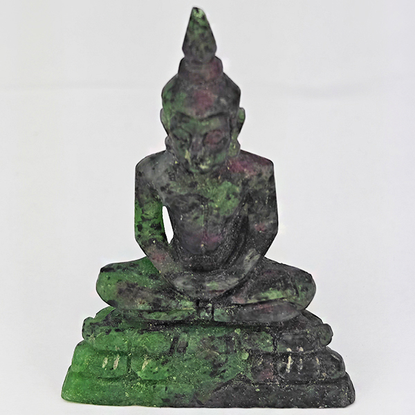 Natural Red Green Ruby in Zoisite 88.20 Ct. Buddha Carving Shape 50 x 36 Mm Gemstone From Madagascar