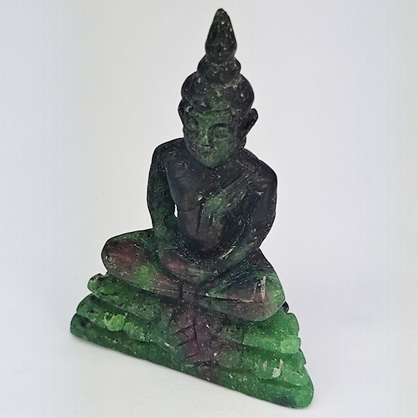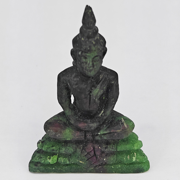 Natural Red Green Ruby in Zoisite 54.93 Ct. Buddha Carving Shape 43 x 28 Mm Gemstone From Madagascar