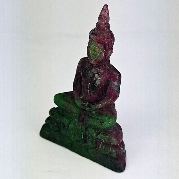 Natural Red Green Ruby in Zoisite 67.38 Ct. Buddha Carving Shape 45 x 30 Mm Gemstone From Madagascar