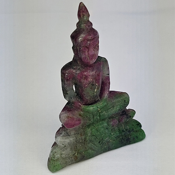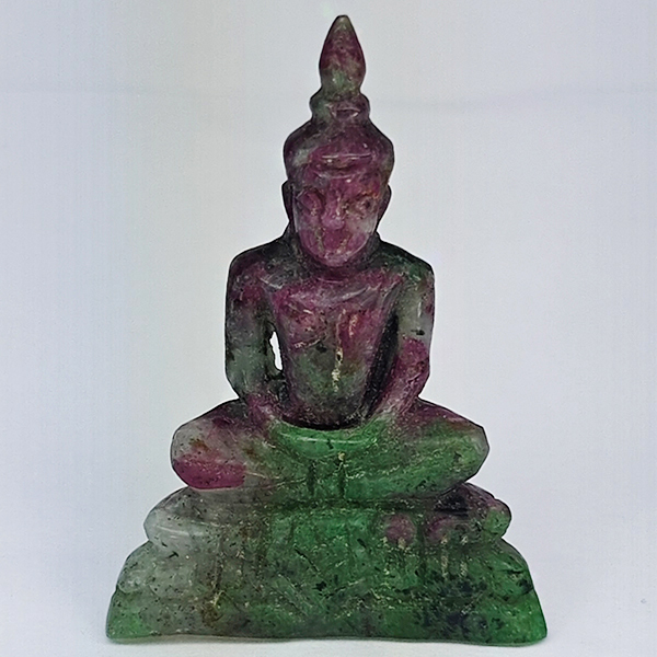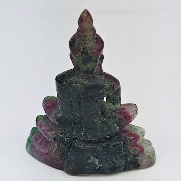 Natural Red Green Ruby in Zoisite 63.50 Ct. Buddha Carving Shape 46 x 31 Mm Gemstone From Madagascar